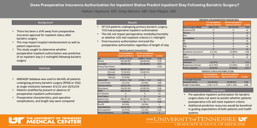 Does Preoperative Insurance Authorization for Inpatient Status Predict Inpatient Stay Following Bariatric Surgery?