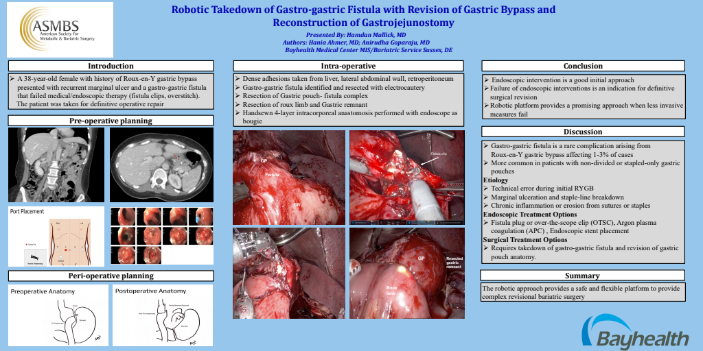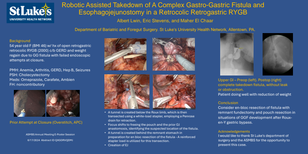 Robotic Takedown of Gastrogastric Fistula with Revision of Gastric Bypass and Reconstruction of Gastrojejunostomy