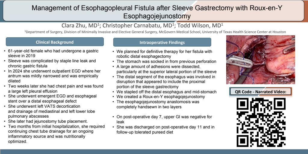 Management of Esophagopleural Fistula after Sleeve Gastrectomy with Roux-En-Y Esophagojejunostomy