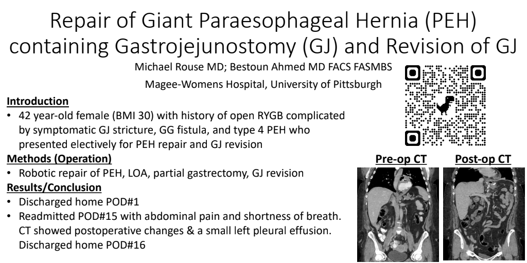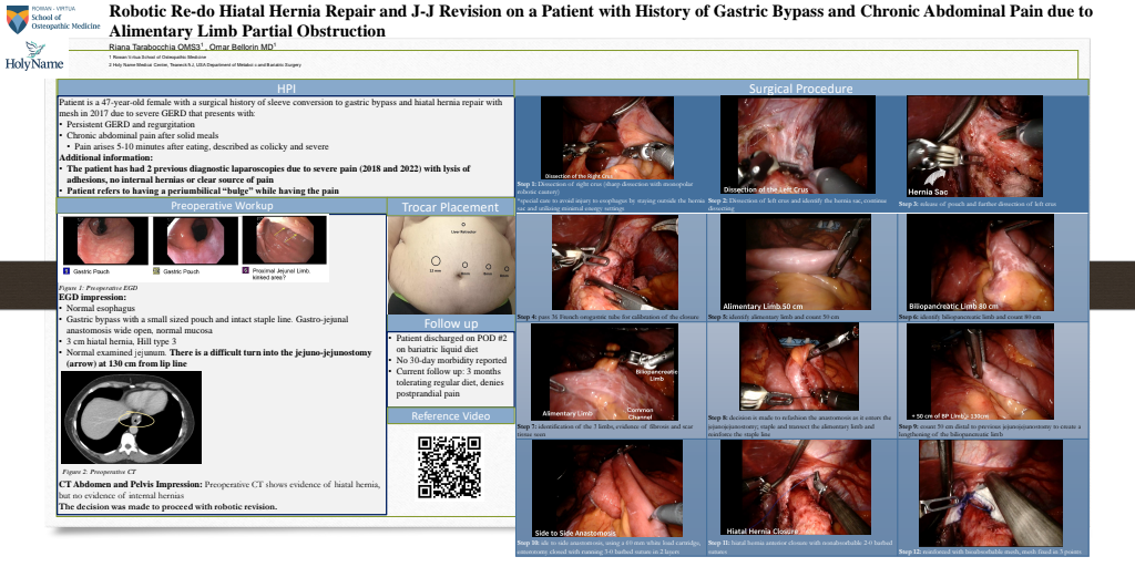 Robotic Re-do hiatal hernia repair and J-J revision on a patient with history of Gastric bypass and Chronic abdominal pain due to alimentary limb partial obstruction
