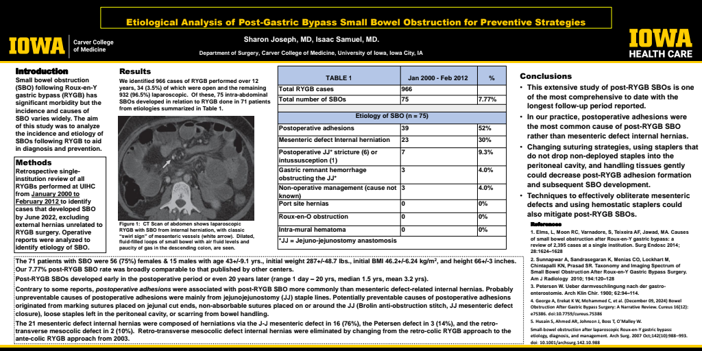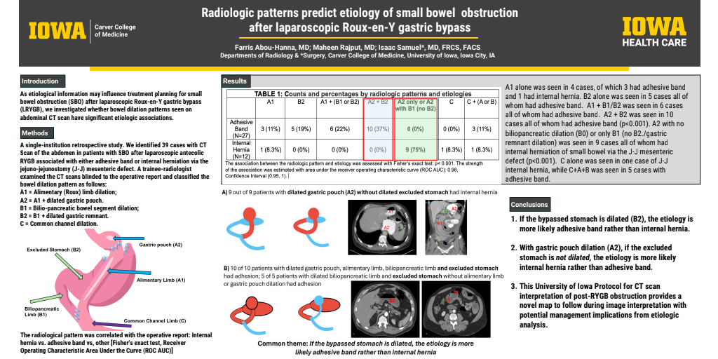 Radiologic patterns predict etiology of small bowel obstruction (SBO) after laparoscopic Roux-en-Y gastric bypass (RYGB)
