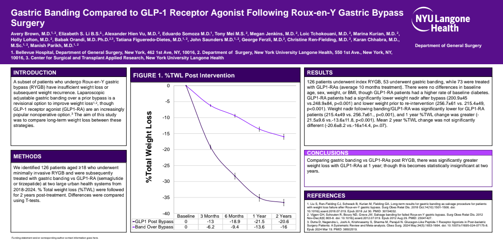 Gastric Banding Compared to GLP-1 Receptor Agonist Following Roux-en-Y Gastric Bypass Surgery