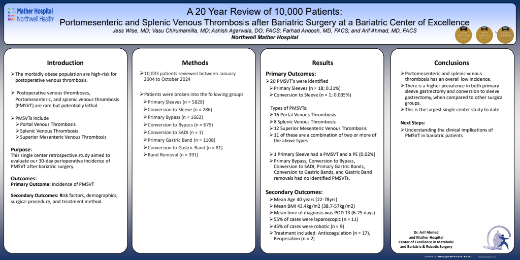 A 20 Year Review of 10,000 Patients: Portomesenteric and Splenic Venous Thrombosis after Bariatric Surgery at a Bariatric Center of Excellence