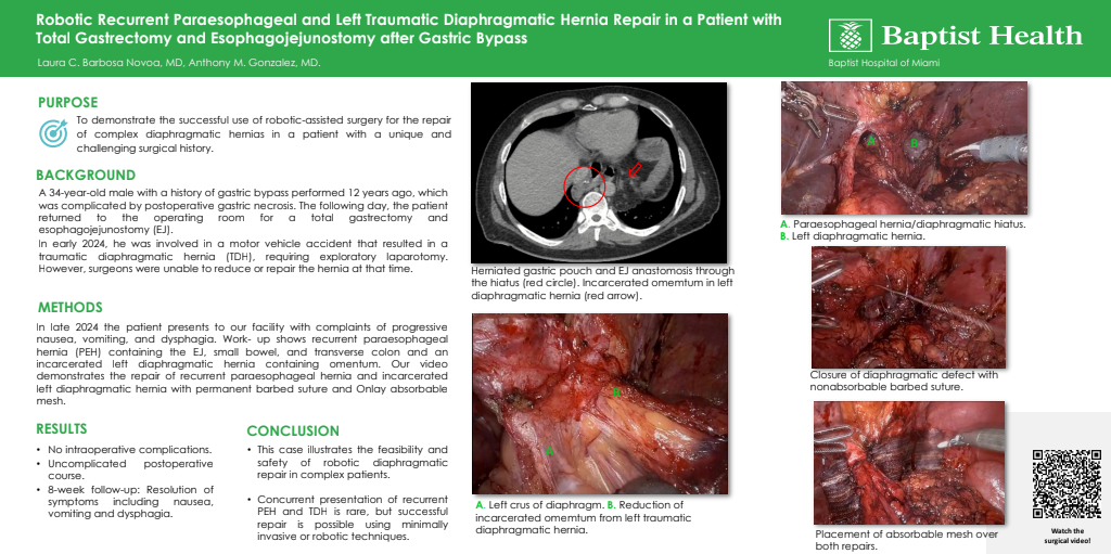Robotic Recurrent Paraesophageal and Left Traumatic Diaphragmatic Hernia Repair in a Patient with Total Gastrectomy and Esophagojejunostomy after Gastric Bypass
