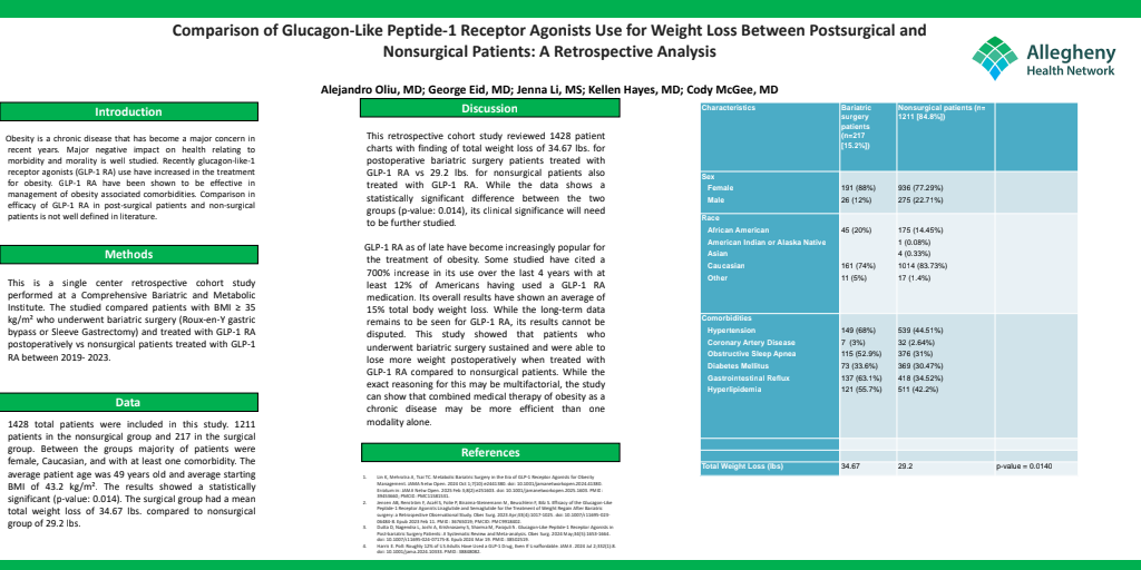 A Higher Body Mass Index Predicts the Likelihood of Surgery for Patients on Glucagon-Like Peptide-1 Agonists